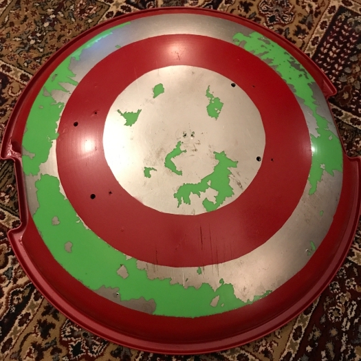 This isn't a movie-perfect recreation but it is a pretty easy process and makes a great halloween costume! You'll notice particularly the shield isn't actually even a perfect circle due to the hand holds in the sled, and the straps are functional (so you can hold the shield with one arm or behind your back) but do not resemble the movie straps. Also it's plastic instead of vibranium so not useful in combat.
